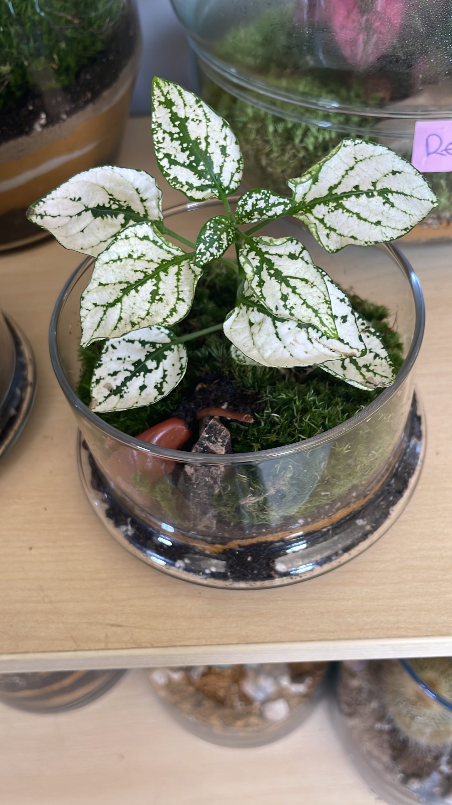 Cúpula Juno 14 x 11,5 cm, fittonia, cúpula jardín eterno, 14 x 11.5 cm, fitonnia, terrario, paludario