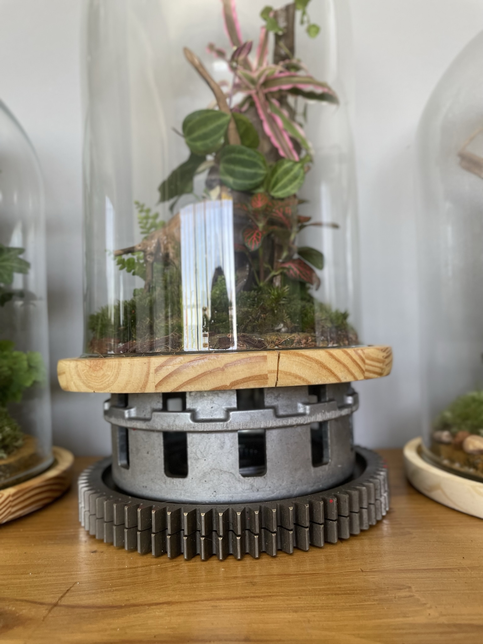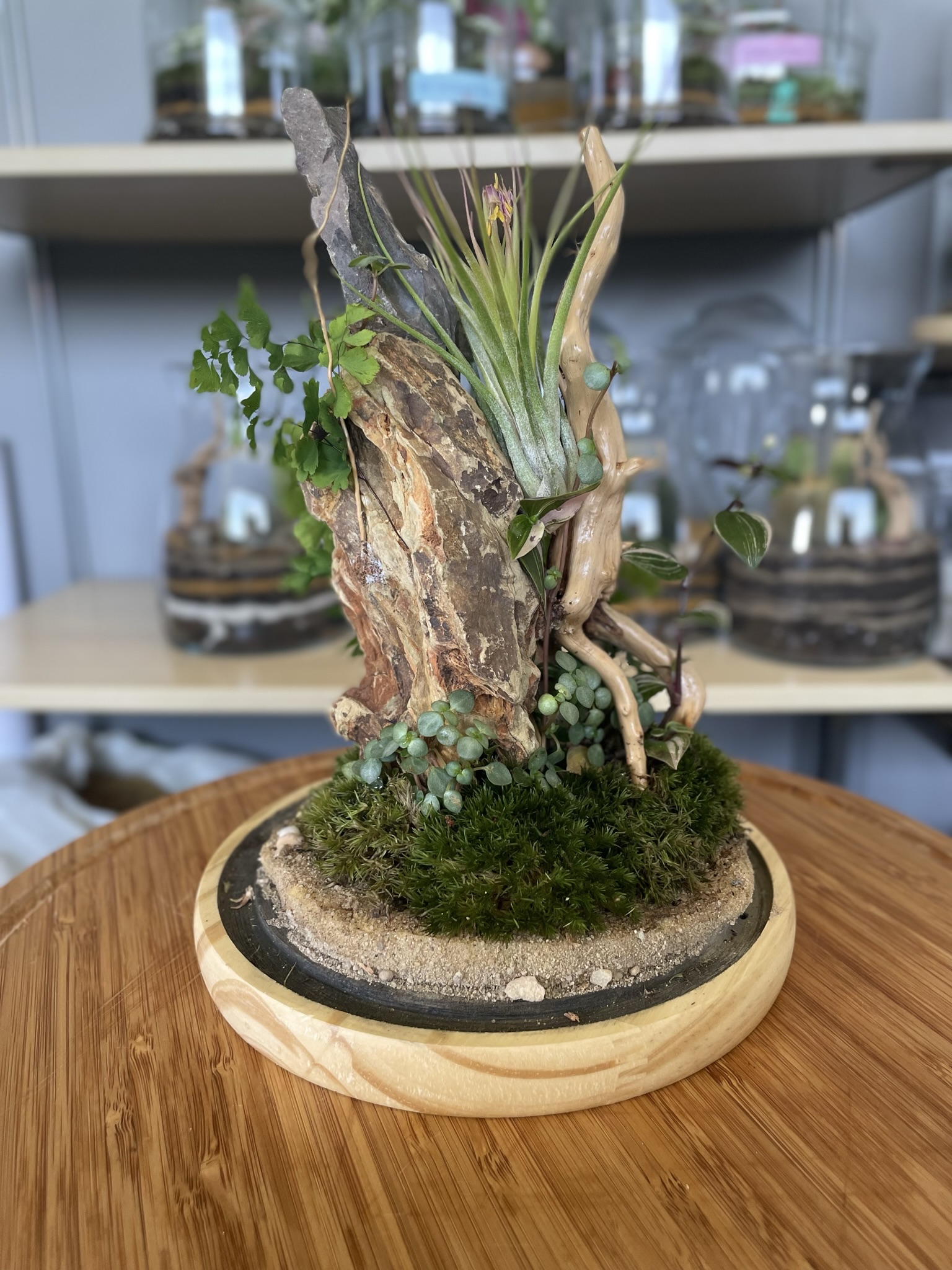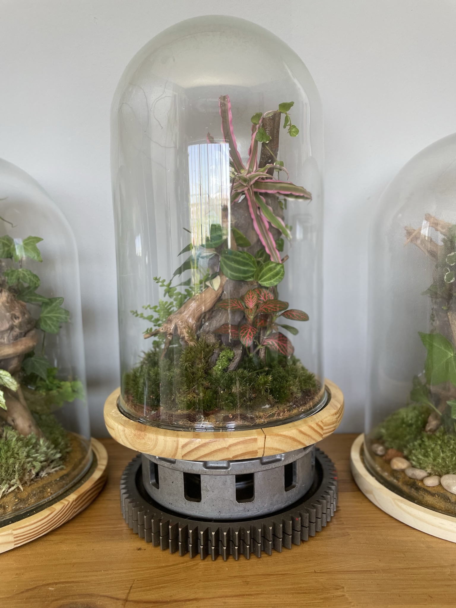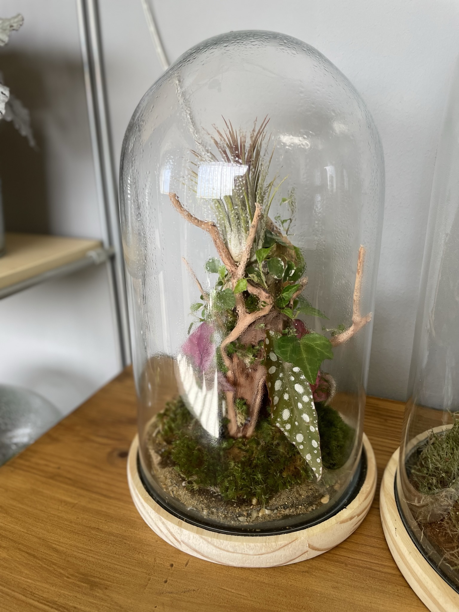 Minerva es una de nuestras cúpulas estrella, sus medidas de 25 x 15cm son el tamaño perfecto para que cualquier rincón tenga un toque discreto y elegante además de lleno de vida.