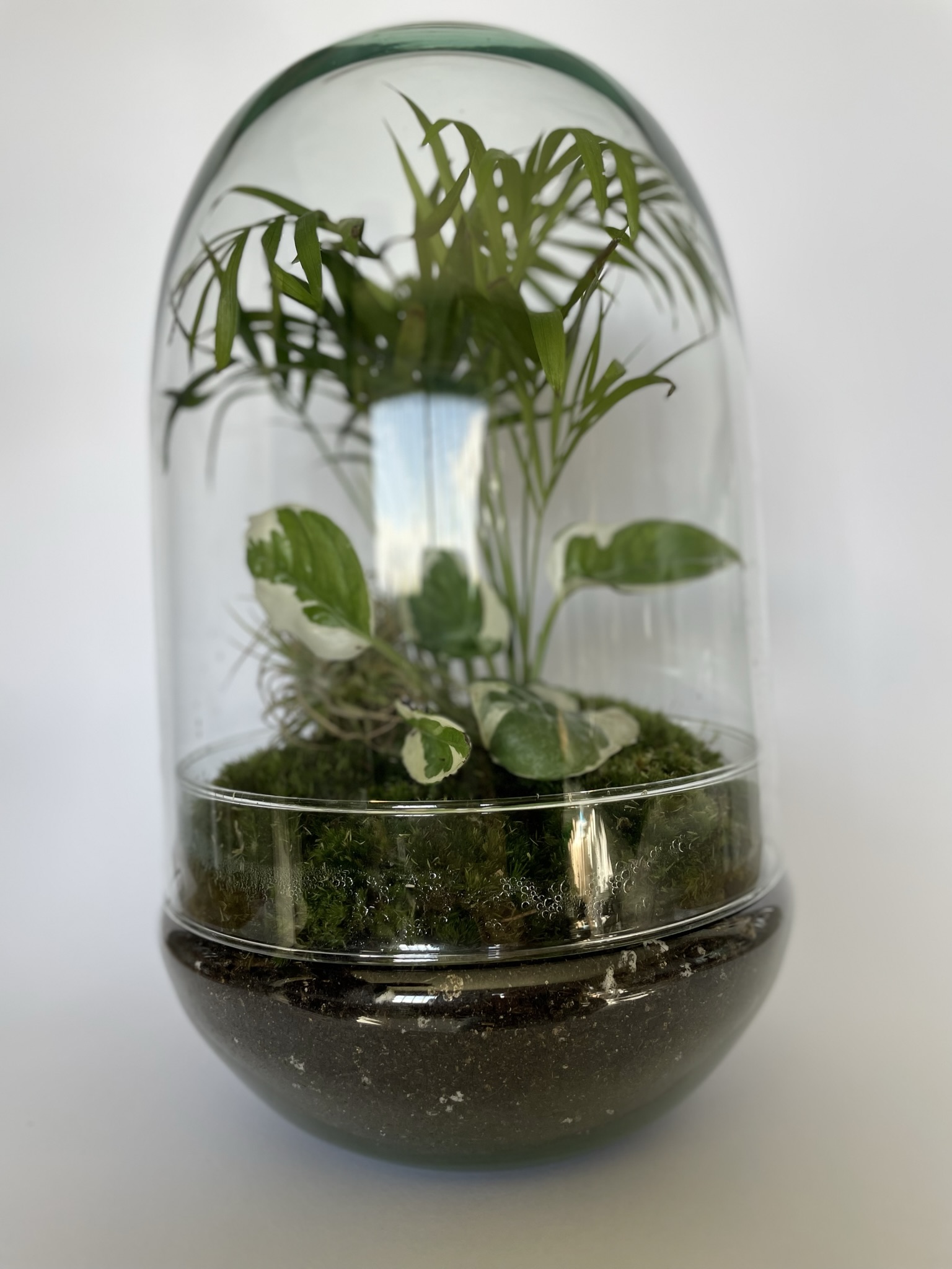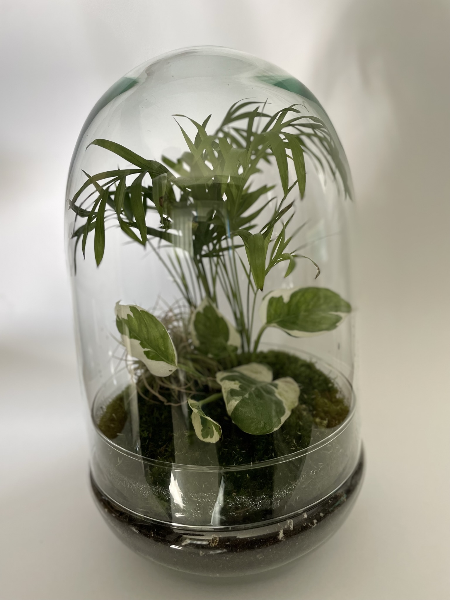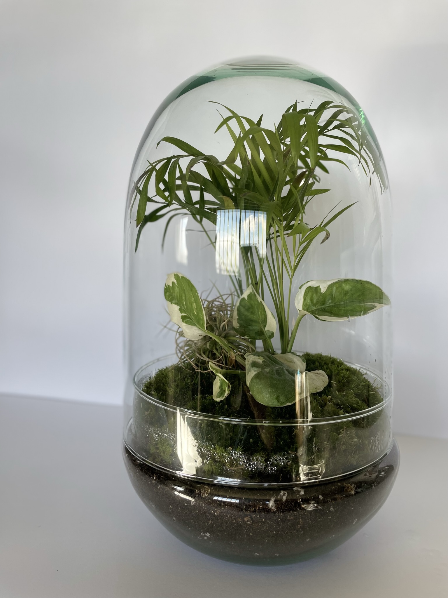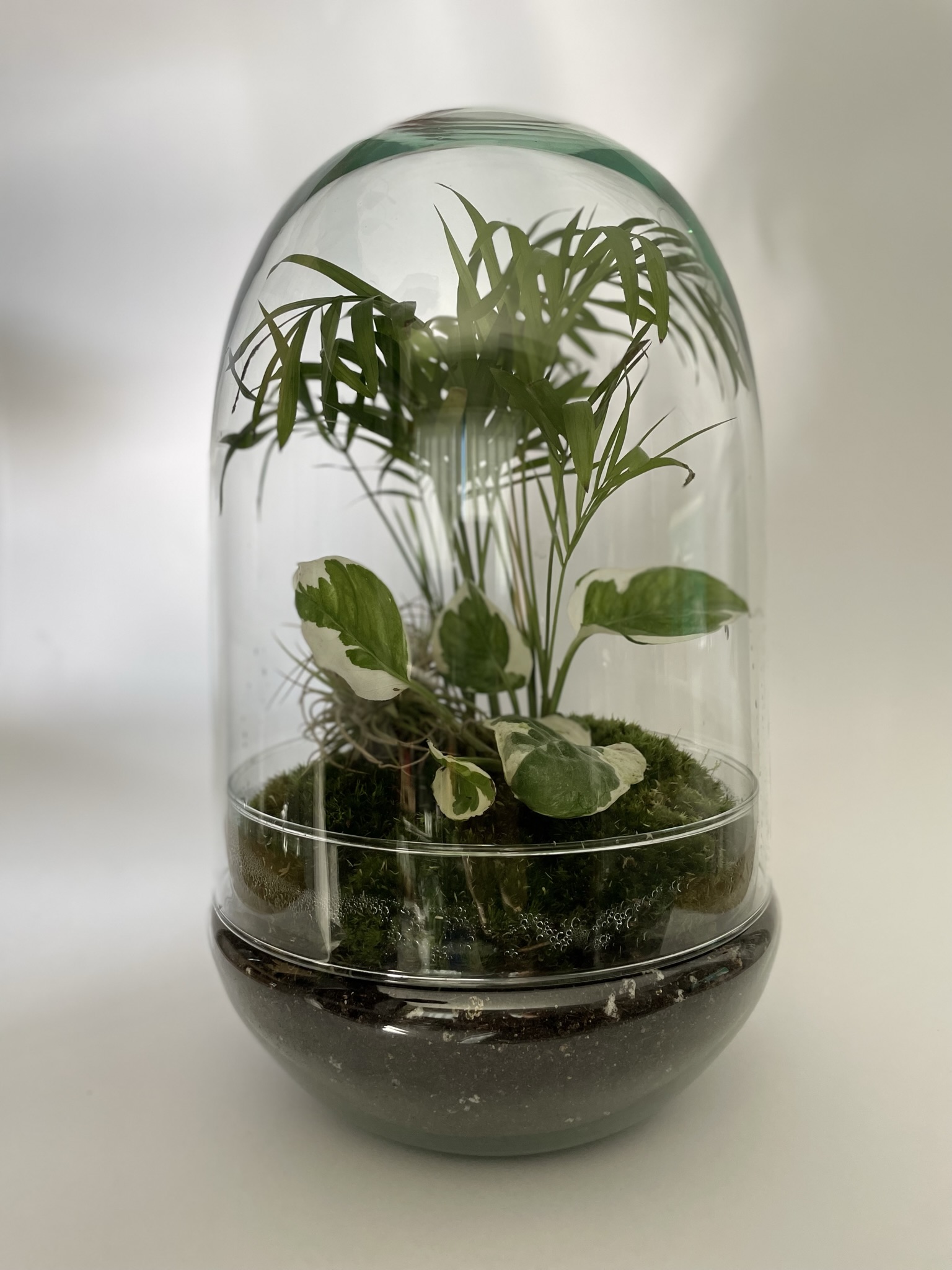 Minerva es una de nuestras cúpulas estrella, sus medidas de 25 x 15cm son el tamaño perfecto para que cualquier rincón tenga un toque discreto y elegante además de lleno de vida.