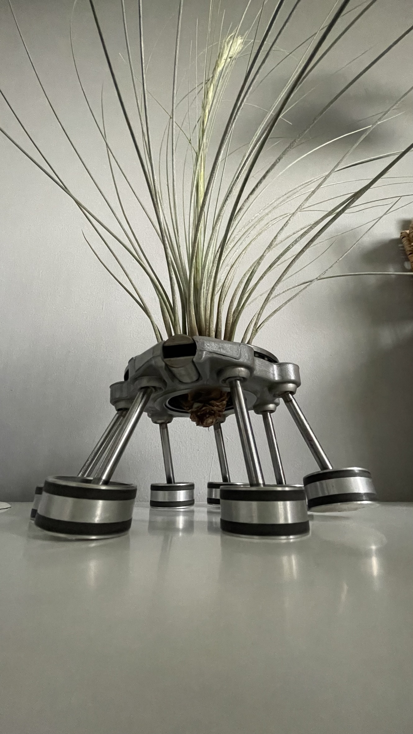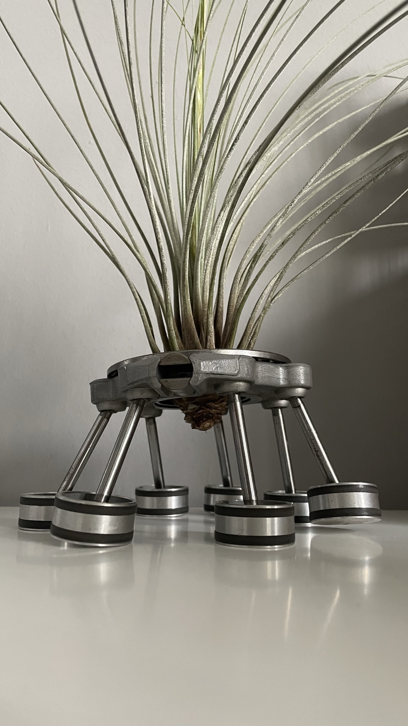 Los diseños únicos de nuestra sección Single One son, como el nombre indica, piezas de las que sólo hay una existencia, por lo que las convierte en una pieza exclusiva. En este caso, el soporte Nix es un soporte para cúpulas o para plantas como las Tillandsias como se aprecia en la foto. Un soporte exclusivo que hará que tus piezas tengan un toque industrial.